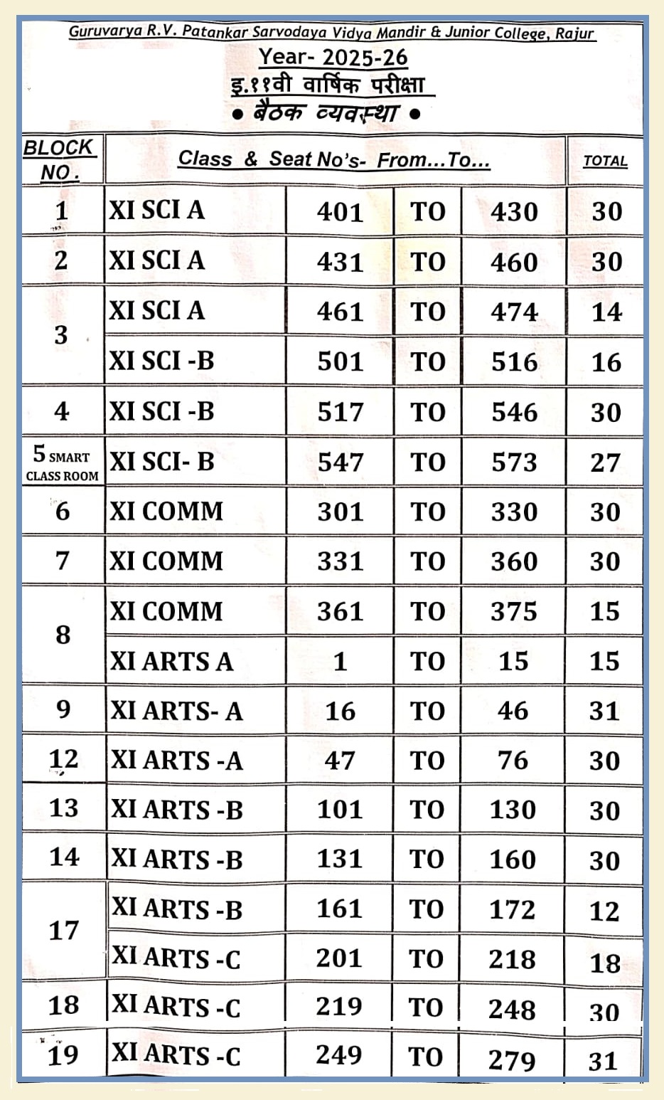 • शनिवार दिनांक ११/०४/२०२६ पासून इयत्ता ११ वी ची लेखी परीक्षा सुरु होत आहे.