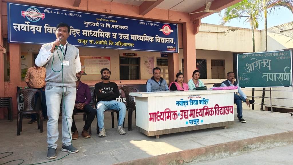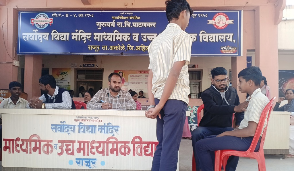 ‘विद्यार्थ्यांचे आरोग्य वेळेवर तपासणे हे त्यांच्या शारीरिक व शैक्षणिक विकासासाठी अत्यंत आवश्यक आहे. WHO च्या मते सर्वसाधारणपणे ५-१७ वयोगटातील मुला-मुलींमध्ये पौष्टिक घटकांची कमतरता, डोळ्यांचे त्रास आणि मानसिक ताण या समस्या आहेत. शालेय आरोग्य शिबिरांद्वारे या समस्यांना प्रारंभिक अवस्थेत ओळखून उपाययोजना करता येते. शालेय आरोग्य शिबिराचे महत्व केवळ आजार बघण्यापुरते मर्यादित नाही तर ते एक समग्र आरोग्यसंस्कृती निर्माण करण्यासाठी आहे’, असे मत अकोले येथील प्रथितयश डॉक्टर संदीप कडलग यांनी याप्रसंगी मांडले.