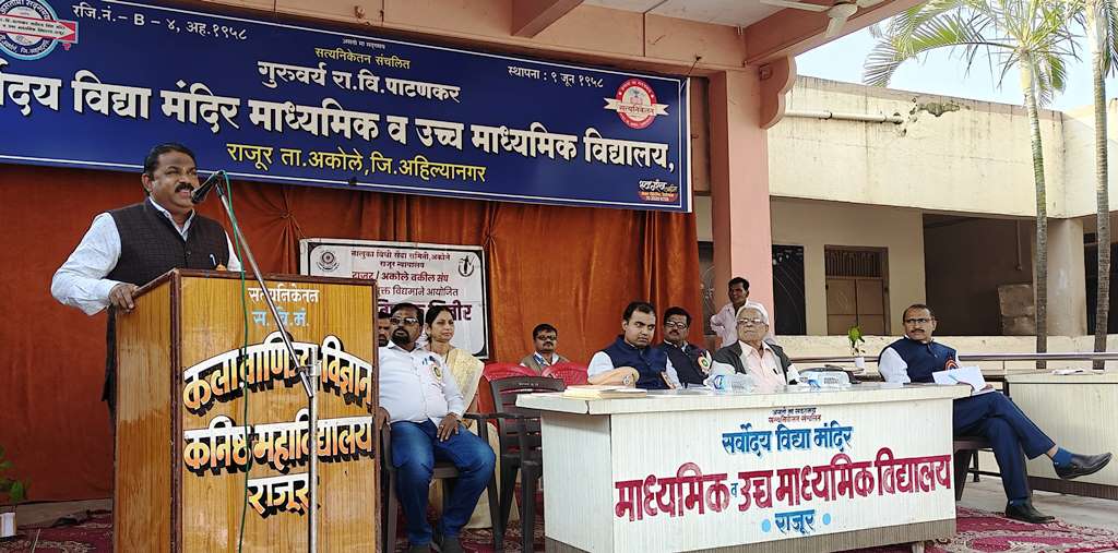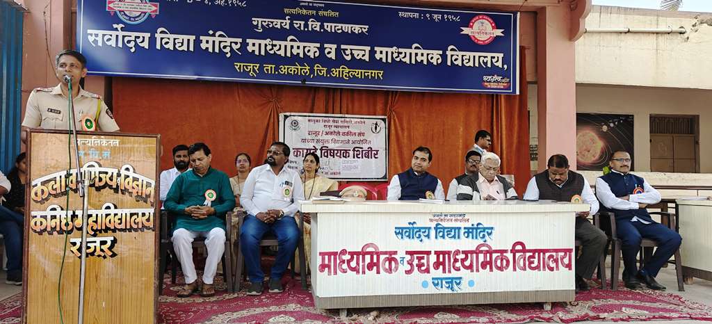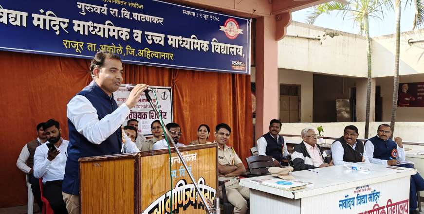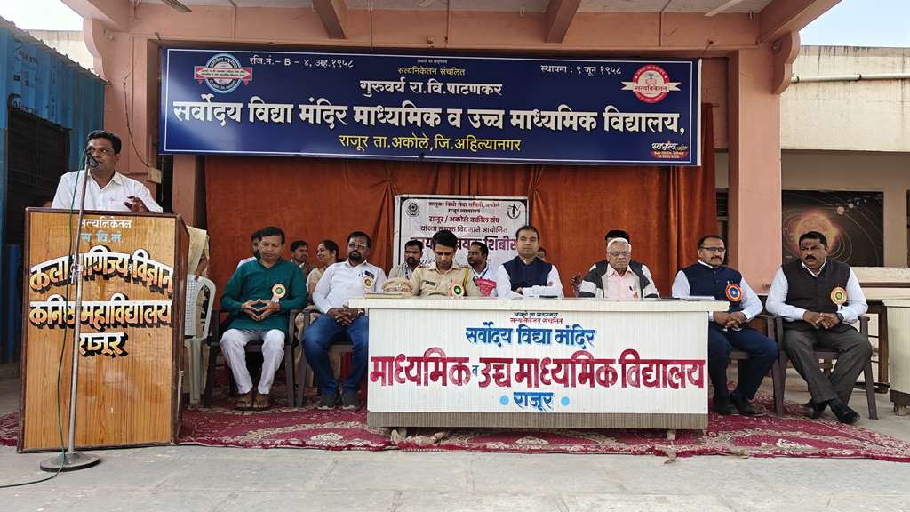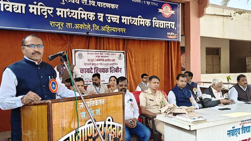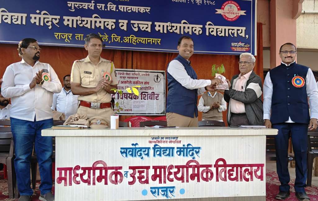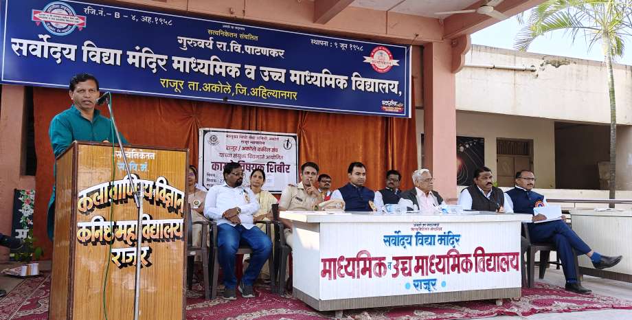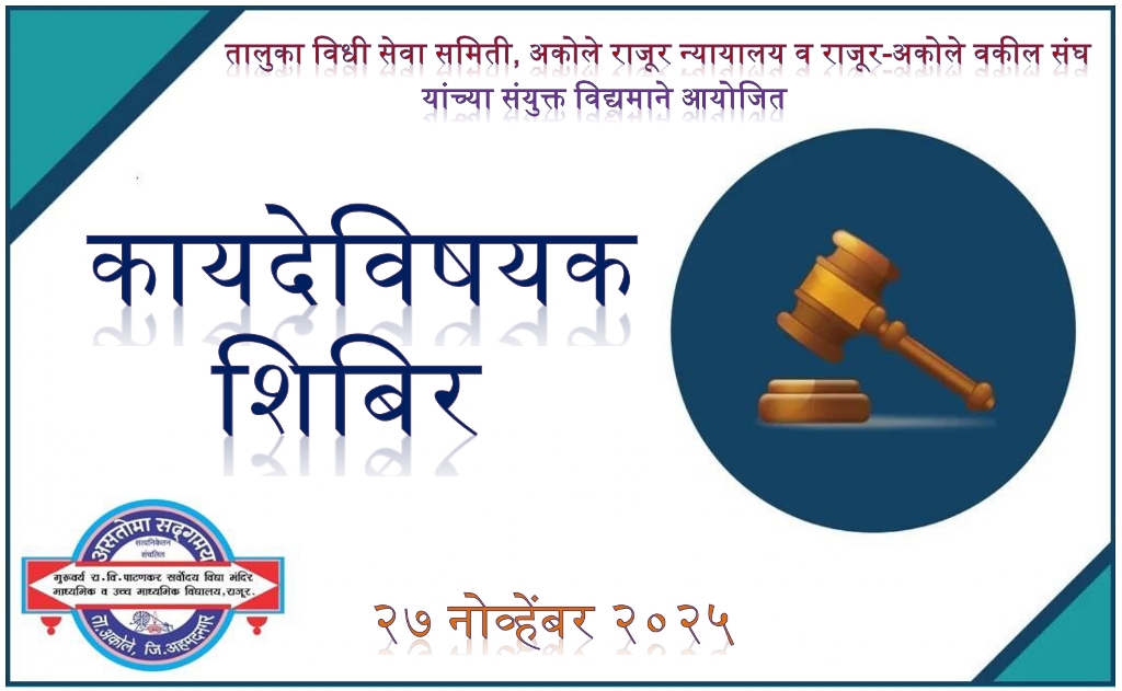 तालुका विधी सेवा समिती, अकोले राजूर न्यायालय व राजूर-अकोले वकील संघ यांच्या संयुक्त विद्यमाने आज गुरुवर्य रा.वि.पाटणकर सर्वोदय विद्या मंदिर माध्यमिक व उच्च माध्यमिक विद्यालयामध्ये इयत्ता ११ वी १२ वी च्या विद्यार्थ्यांसाठी आज कायदेविषयक जागरूकता शिबिराचे यशस्वी आयोजन करण्यात आले.