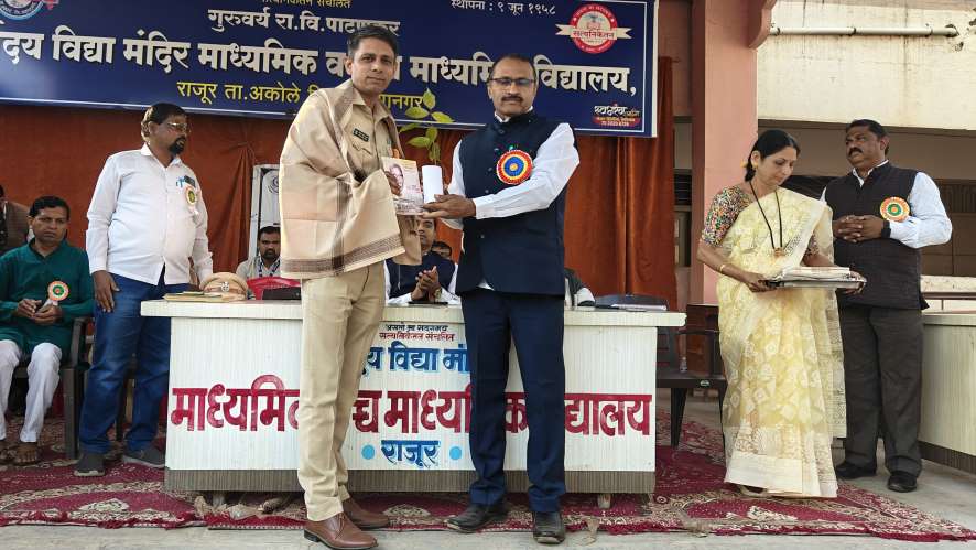 राजूर न्यायालयाचे न्यायाधीश श्री.एस.यु.न्याहारकर व राजूर पोलीस स्टेशनचे पोलीस निरीक्षक श्री.के.जी.पवार यांनी आपल्या प्रतिकूल कौटुंबिक परिस्थितीचा दाखला देत आपल्या यशाची यशोगाथा विद्यार्थ्यांसमोर मांडली. जिद्द व चिकाटी माणसाला यशाच्या सर्वोच्च शिखरावर नेऊन ठेवत असते असे प्रेरणादाई विचार त्यांनी मांडले.
