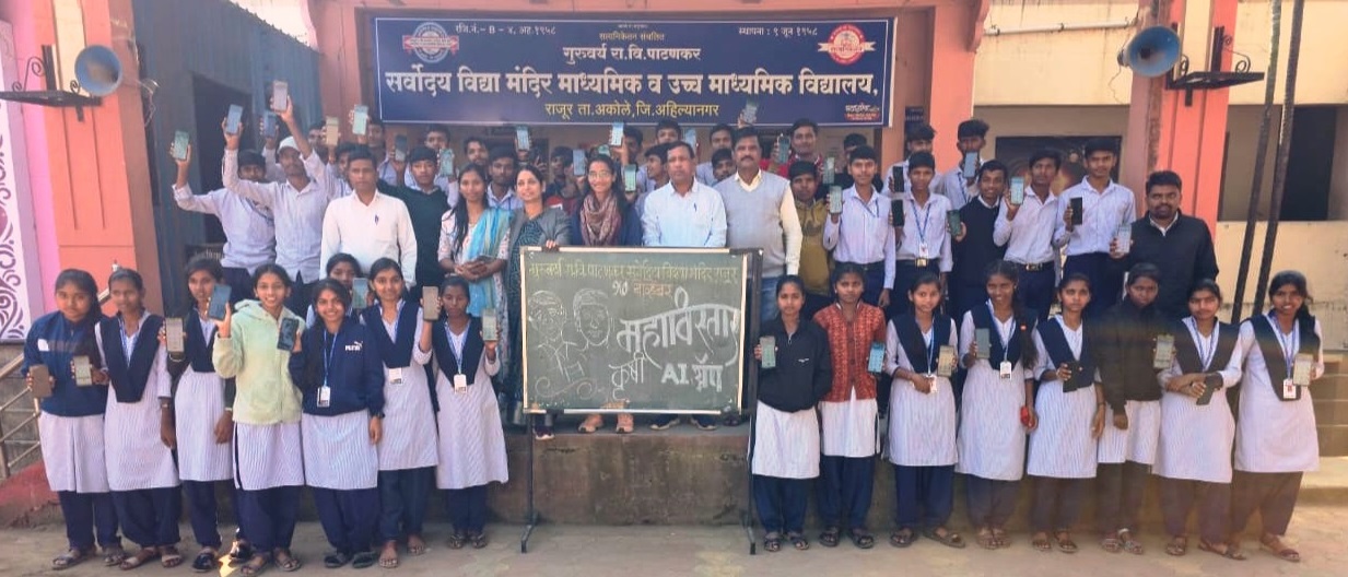 या अनुषंगाने अकोले तालुका कृषि विभागाच्या वतीने गुरुवर्य रा.वि.पाटणकर सर्वोदय विद्या मंदिर माध्यमिक व उच्च माध्यमिक विद्यालयामध्ये आज विद्यार्थ्यांना महाविस्तार AI ॲप बद्दल मार्गदर्शन करण्यात आले. या ॲपचा वापर करून उत्पादन खर्चात कपात होऊन उत्पन्नात जास्तीत जास्त वाढ कशी होईल यासंदर्भात शास्त्रशुद्ध माहिती देण्यात आली. विद्यार्थ्यांना महाविस्तार AI ॲप Install व प्रत्यक्षात ॲपमधील मेनुंचा वापर करण्यासंदर्भात मंडळ कृषी-अधिकारी श्री.यशवंत खोकले यांनी विद्यार्थ्यांना सखोल मार्गदर्शन केले.