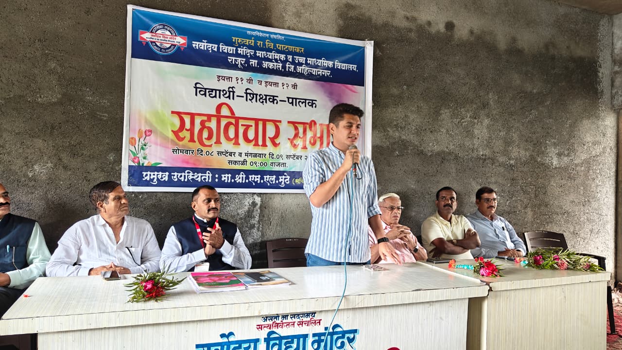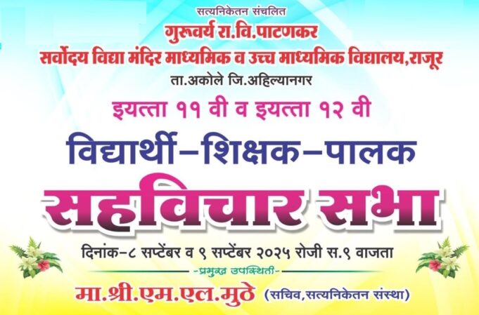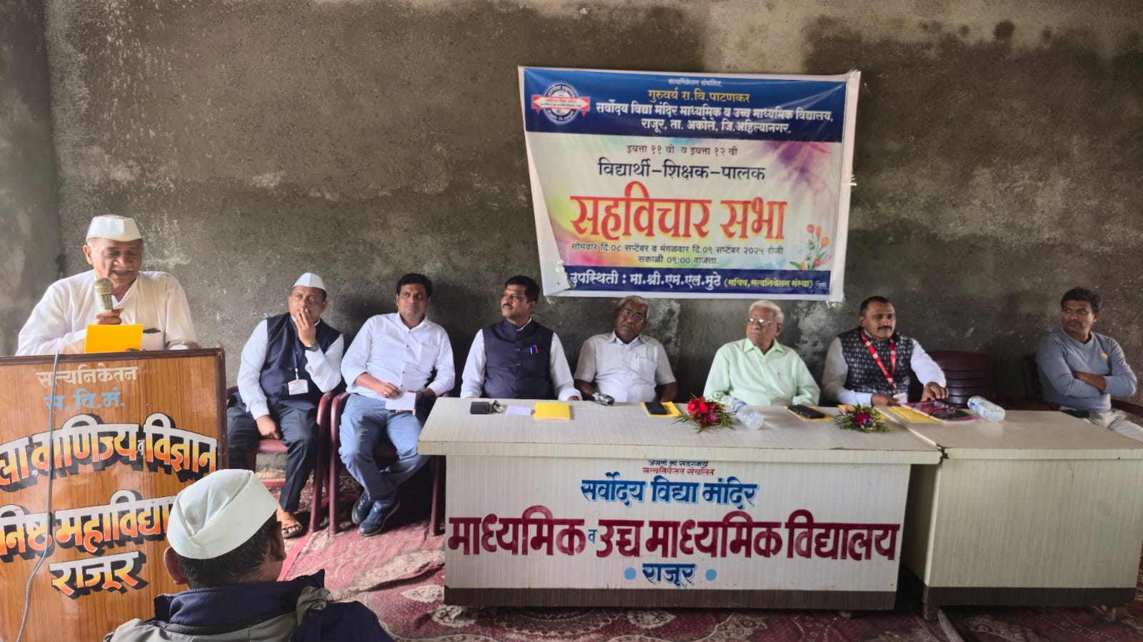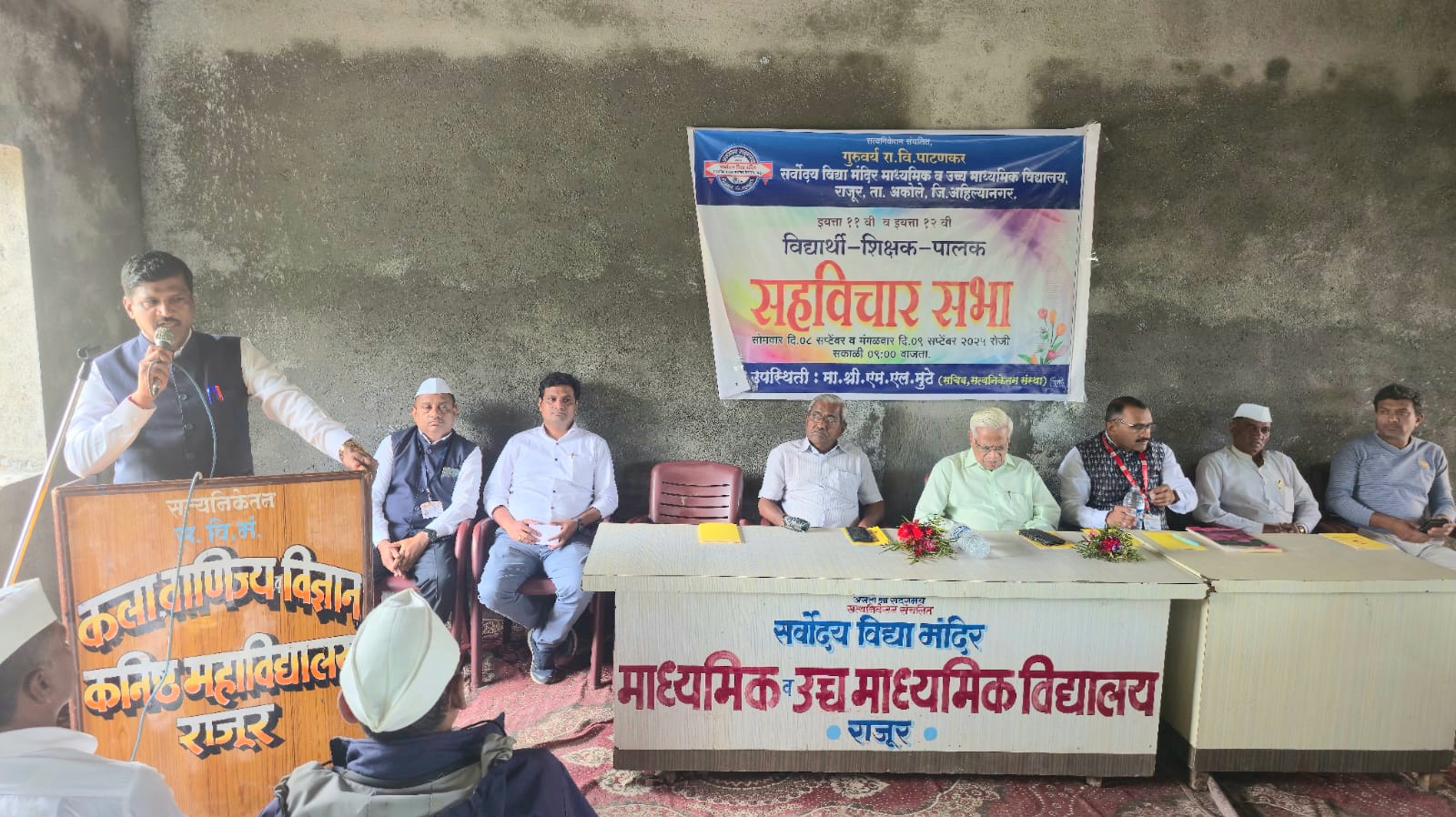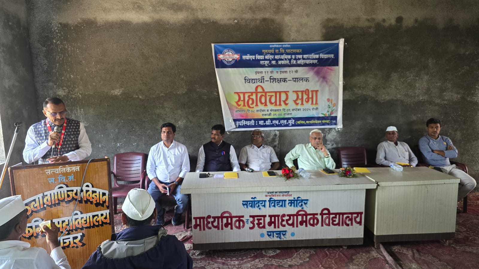 विद्यार्थी गुणवत्ता वाढ व विकास, विद्यार्थ्यांच्या शैक्षणिक समस्या सोडवणे, घटक चाचणी परीक्षा निकाल, विद्यार्थी उपस्थिती, शाळेतील विविध उपक्रम इत्यादी मुद्द्यांवर या सहविचार सभेमध्ये खेळीमेळीच्या वातावरणात चर्चा झाली. सत्यनिकेतन संस्थेचे सचिव श्री.एम.एल.मुठे यांच्या अध्यक्षतेखाली या सहविचार सभा पार पडल्या. नाशिक पदवीधर मतदारसंघाचे महाराष्ट्र विधान परिषदेचे सदस्य आ.सत्यजितदादा तांबे, उपसरपंच श्री.संतोष बनसोडे, श्री.गोकुळशेठ कानकाटे, श्री.संतोष मुतडक, सत्यनिकेतन संस्थेचे संचालक श्री.टी.एन.कानवडे, श्री.एस.टी.येलमामे, श्री.विजयजी पवार, श्री.मिलिंदशेठ उमराणी, शासकीय मुलींच्या वसतिगृहाच्या अधीक्षिका श्रीमती मंदाडे मॅडम व ॲड.एम.एन.देशमुख महाविद्यालयाचे प्राचार्य श्री. बी.वाय.देशमुख यावेळी उपस्थित होते.