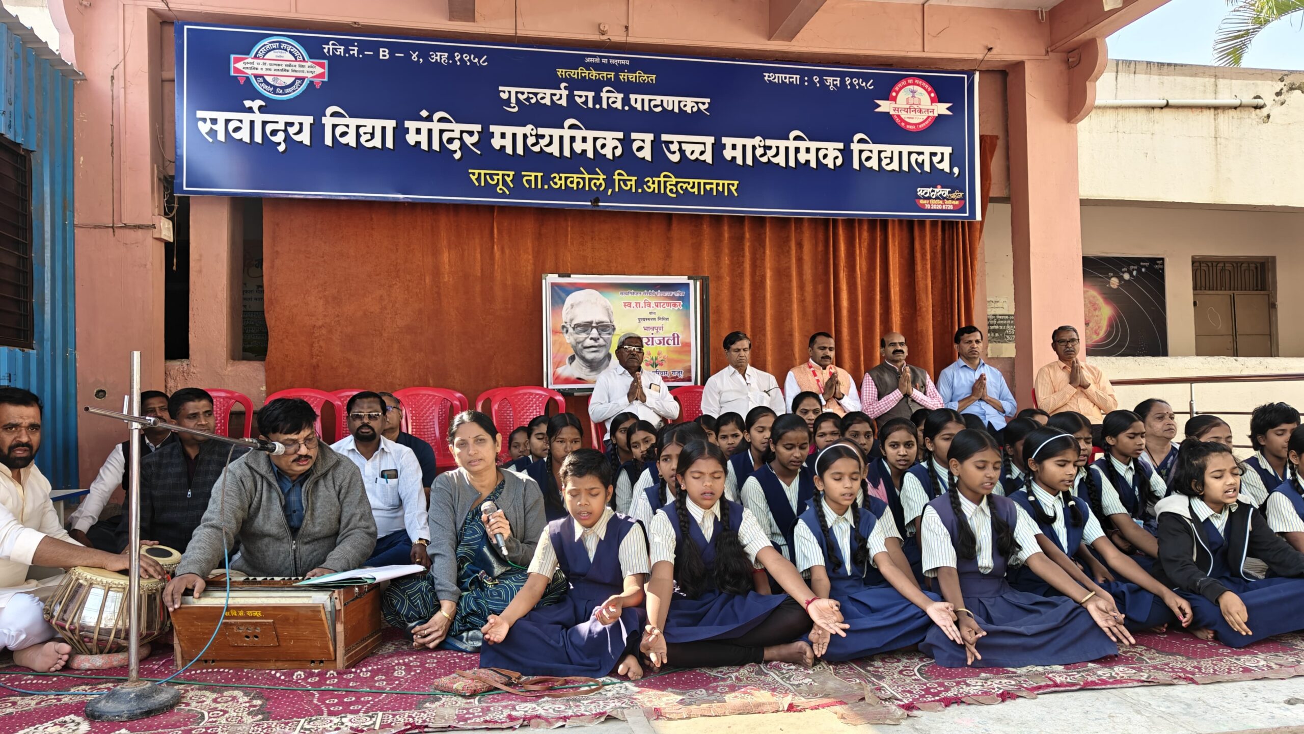 सकाळच्या प्रसन्न वातावरणामध्ये स्व.रा.वि. पाटणकर यांच्या स्मृतीस्थळावरील अर्धाकृती पुतळ्यास मान्यवरांच्या हस्ते पुष्पहार अर्पण करण्यात आला. त्यानंतर गुरुवर्य रा.वि. पाटणकर सर्वोदय विद्या मंदिर माध्यमिक व उच्च माध्यमिक विद्यालयाच्या प्रांगणामध्ये अभिवादन सभेचे आयोजन करण्यात आले. स्व.रा.वि. पाटणकर यांच्या प्रतिमेचे पूजन करून कार्यक्रमाला सुरुवात झाली. ज्येष्ठ शिक्षक श्री.किशोर देशमुख, सौ.बिना सावंत, श्री.बाळासाहेब घिगे व सावित्रीबाई मदन कन्या निवासच्या मुलींनी सुश्राव्य अशा संगीतमय सर्वधर्मीय प्रार्थनेचे गायन केले.