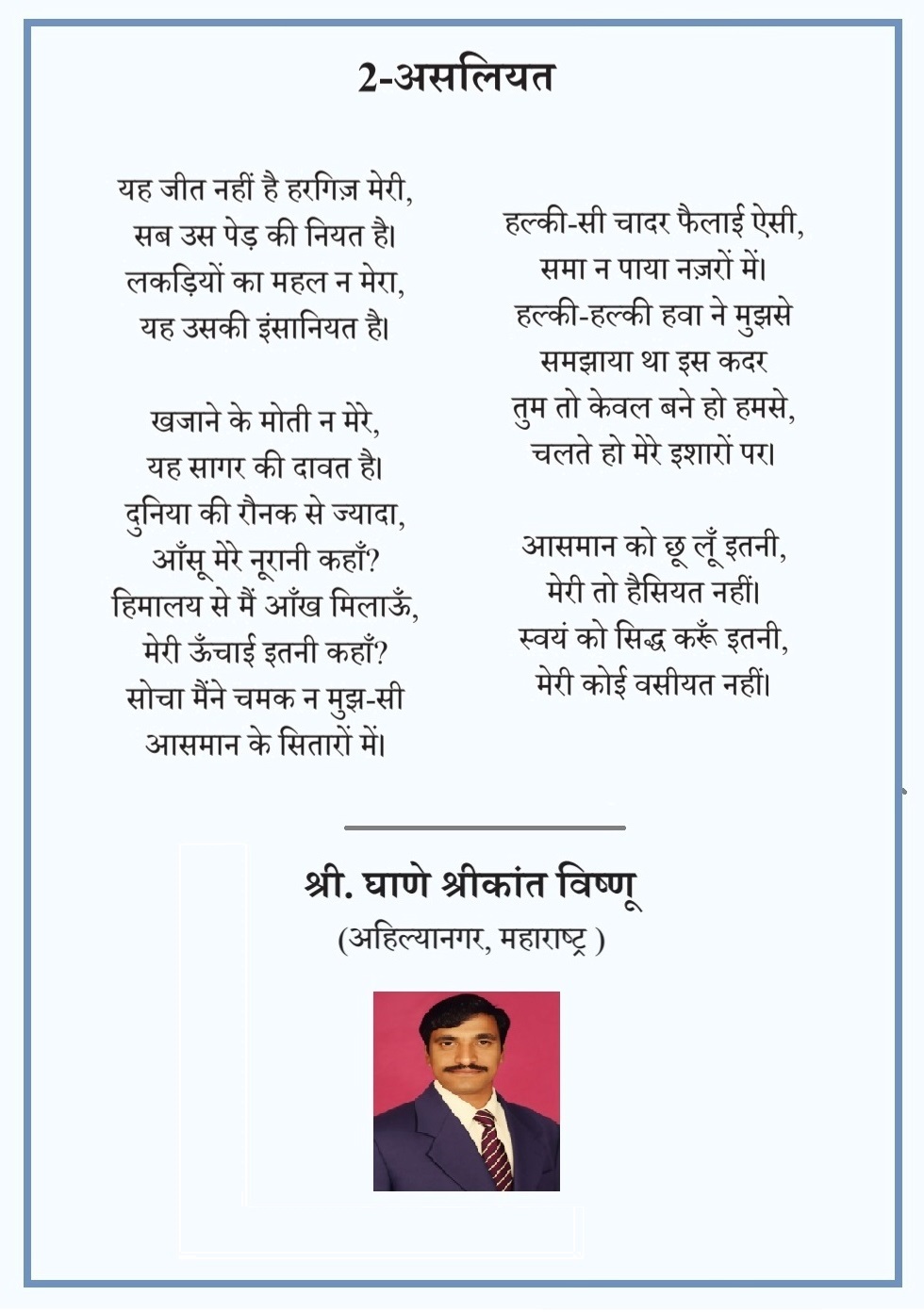 एखाद्या नामवंत साहित्यिकाच्या मार्गदर्शनाखाली आणि प्रतिष्ठित प्रकाशकाच्या संग्रहात आपली रचना समाविष्ट होणे, ही कोणत्याही कवीच्या प्रतिभेला मिळालेली सर्वोच्च पावती आणि त्याच्या साहित्यिक प्रवासातील अत्यंत अभिमानास्पद बाब असते.