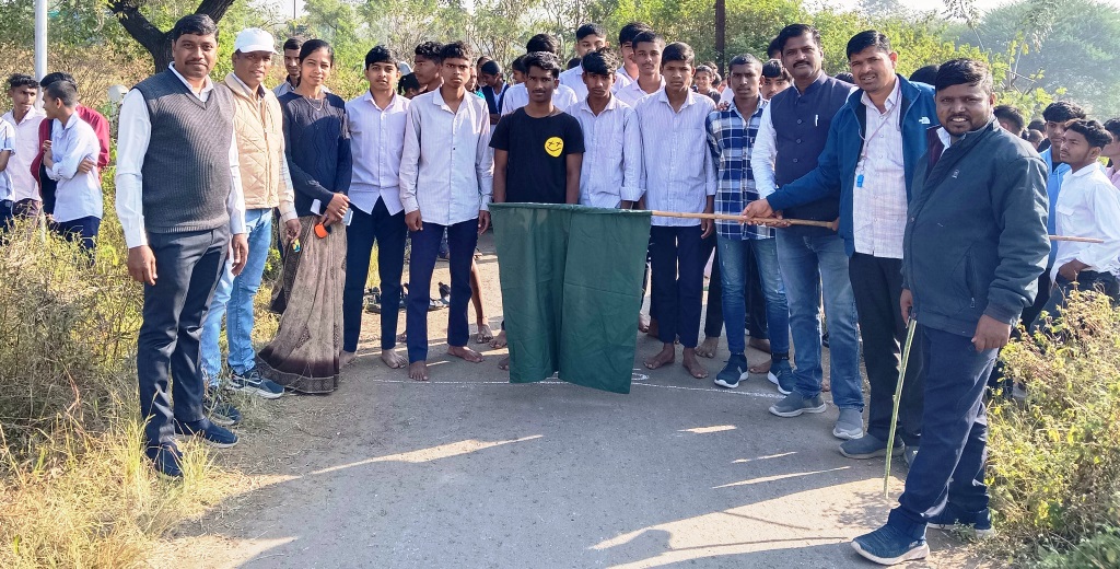 उपप्राचार्य श्री.डी.जी.बु-हाडे, देशमुखवाडीचे ग्रामस्थ श्री.नामदेव देशमुख, श्री.उत्तम देशमुख, श्री.दिपक देशमुख व श्री.जितेंद्र जगदाळे यांनी हिरवा झेंडा दाखवून स्पर्धा सुरु केल्या.