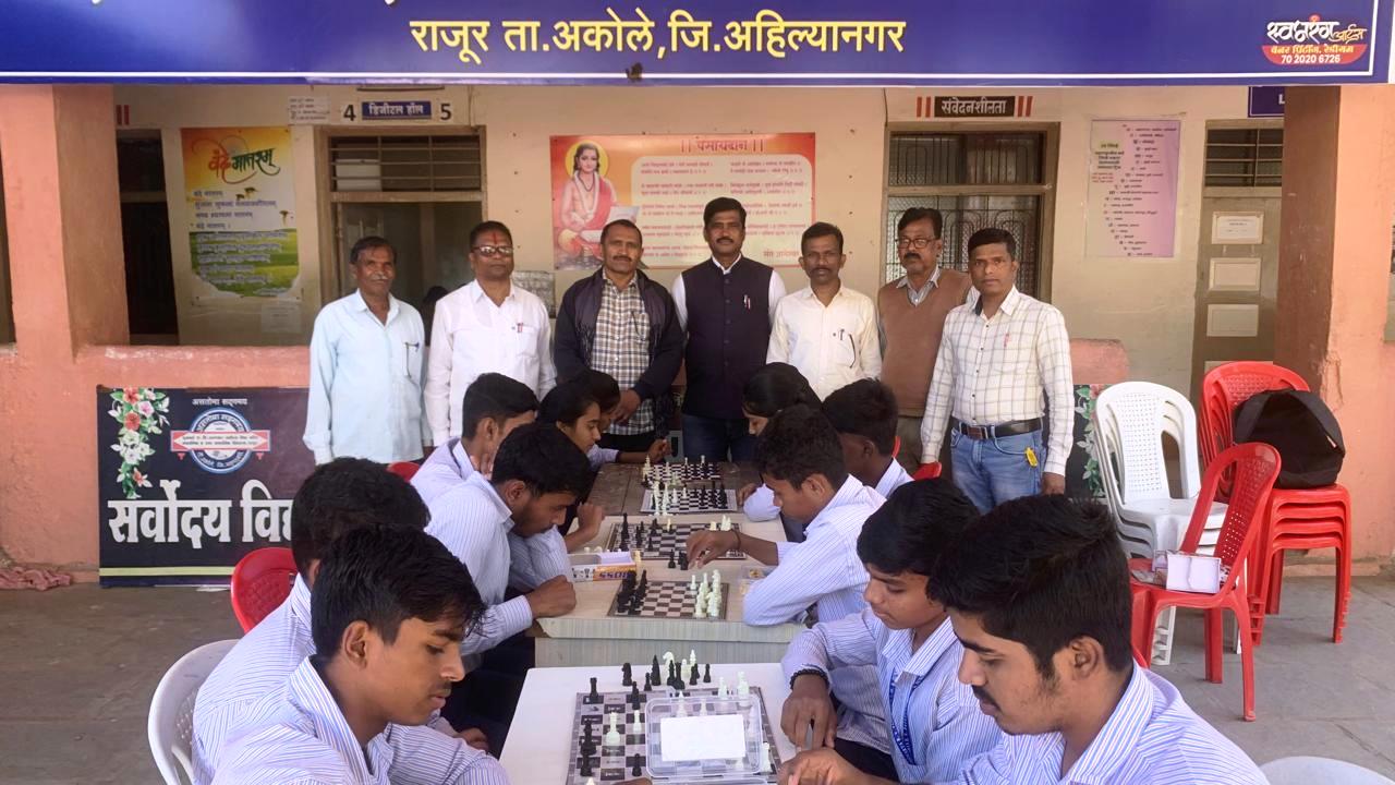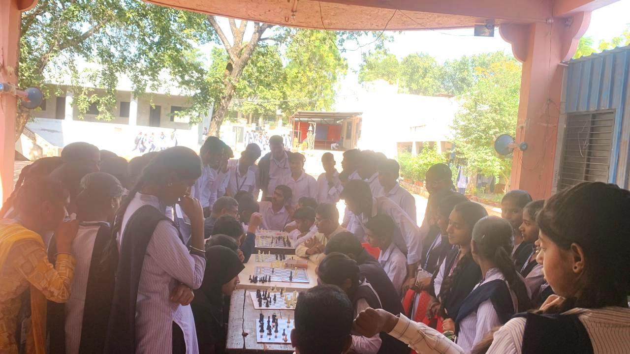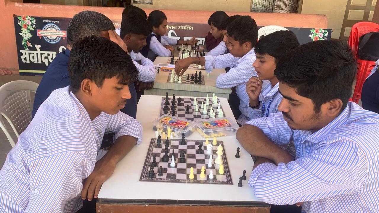चौथ्या दिवशी बुद्धीबळाची (Chess) स्पर्धा घेण्यात आली. विद्यालयाचे प्राचार्य श्री.बी.के.बनकर यांनी या स्पर्धेचे उदघाटन केले. याप्रसंगी क्रीडा शिक्षक श्री.व्ही.टी.तारू, उपप्राचार्य श्री.डी.जी.बु-हाडे, श्री.आर.आर.मढवई, श्री.सुभाष सुकटे, श्री.दिगंबर पवार, श्री.मंगळा देशमुख तसेच विद्यार्थी प्रेक्षक मोठ्या संख्येने उपस्थित होते. स्पर्धेदरम्यान माजी प्रकल्पाधिकारी तथा मंत्रालयातील आदिवासी विकास विभागाचे कक्ष-अधिकारी श्री.राजेंद्र भवारी यांनी भेट देऊन स्पर्धकांचा उत्साह वाढविला.